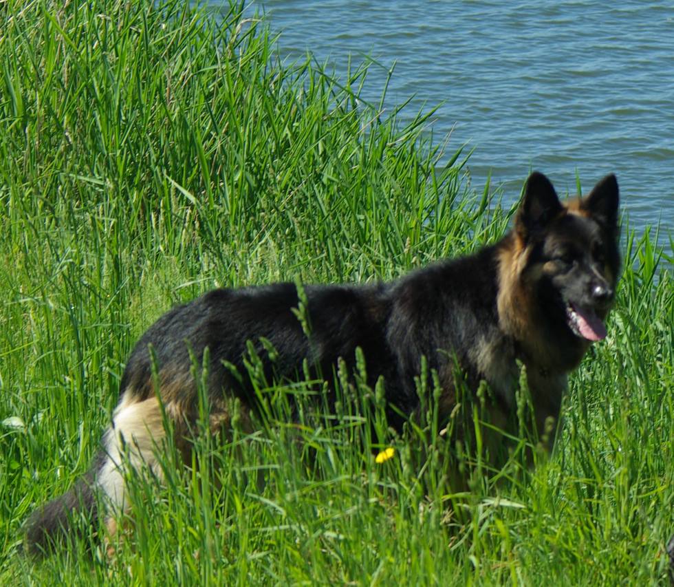 BioAmber is a 7 year old longhaired GSD. We have had her since she was a pup and for the last 3 years she has been by my husband's side who is battling Alzheimers and three types of dementia. She is loving, smart, and very protective. She was never formally trained to be a service dog but she has taken on that role by instinct. A true beauty with a heart of gold.