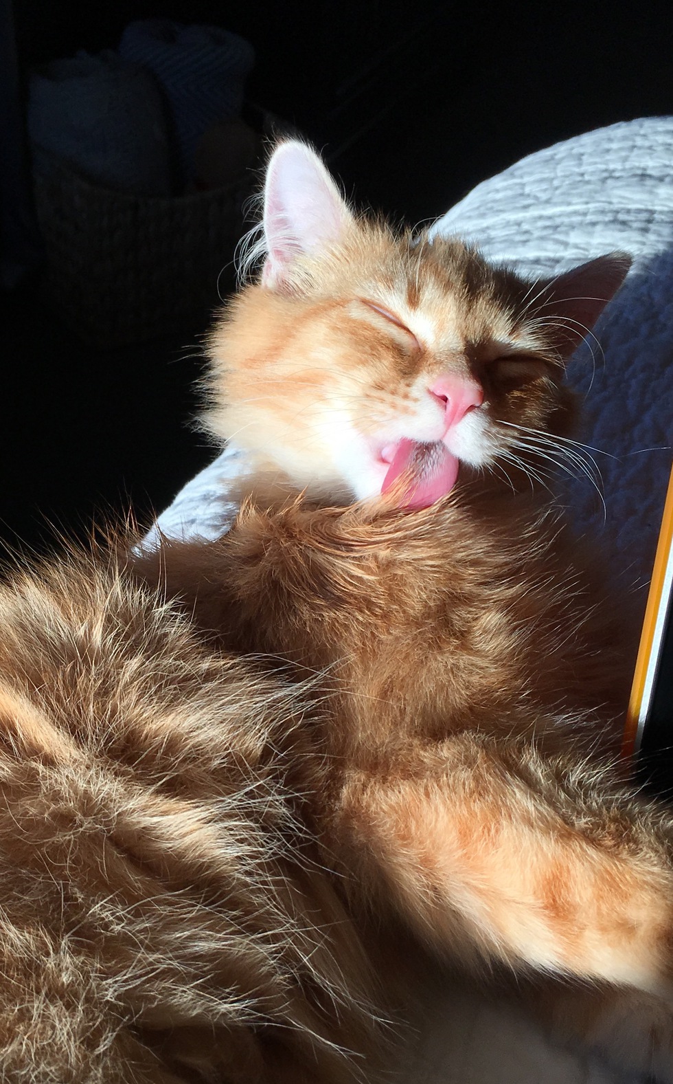 BioSoda was 3 months old when he was trapped by rescuers. He was living in a feral colony and was very sick. He came into my care as a foster with his little brother from another mother. Unfortunately his buddy died from feline distemper shortly after. Soda was expected to die as well but to everyone's surprise he survived. He was shy and he lived in my desk drawer for 5 full weeks before starting to trust. I've since adopted him and he is a beautiful healthy trusting 8 month old kitty. He loves cuddles, playing with his feather and tormenting his dog sister. He's a true survivor and he is loved.