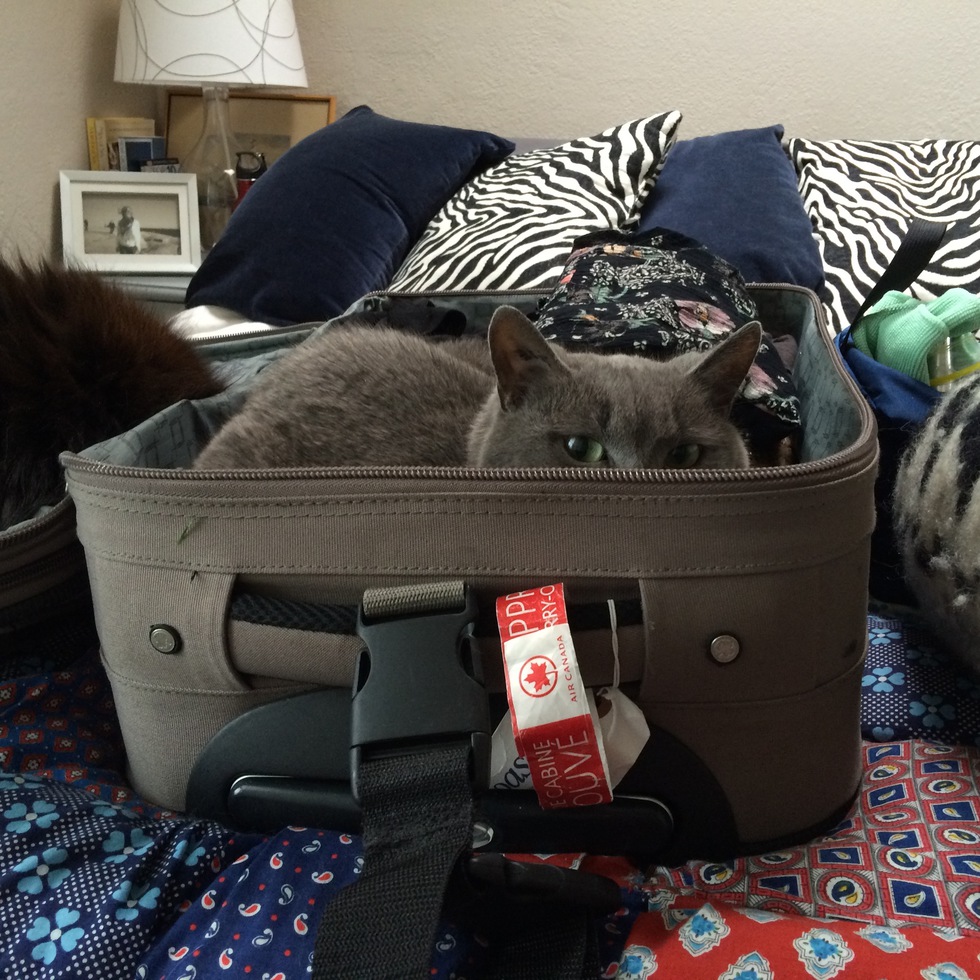 BioLily was a "runt" we adopted from the Toronto Humane Society, and is still very small at 7 lbs. She's 7 years old, but as curious as a kitten. She bravely flew on the plane across the country to move to Victoria, and now she gets to go outdoors and catch bugs -- her favourite outdoor activity. Her all-time favourite thing to do though is cuddle with her humans, closely followed by hiding/sleeping in suitcases. She has all sorts of quirks, including doing "double meows" ("ma-meow!"), tap dancing with her back feet when she's happy, and claiming one of the human arm chairs as her own -- no humans (or our other cat) are allowed to sit in it.