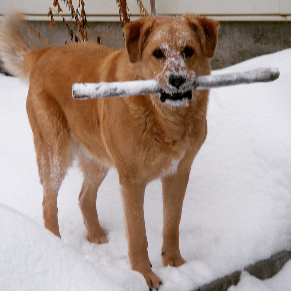 BioTimber was adopted at about 3 years of age from Vernon SPCA. He knew nothing about stairs, cats, cars, manners or being indoors. He ran if you lifted your hand or picked up a stick. Now he can be around chickens, bunnies, deer, dogs, cats and is a beautiful big boy with good manners. He is the official greeter on our street.