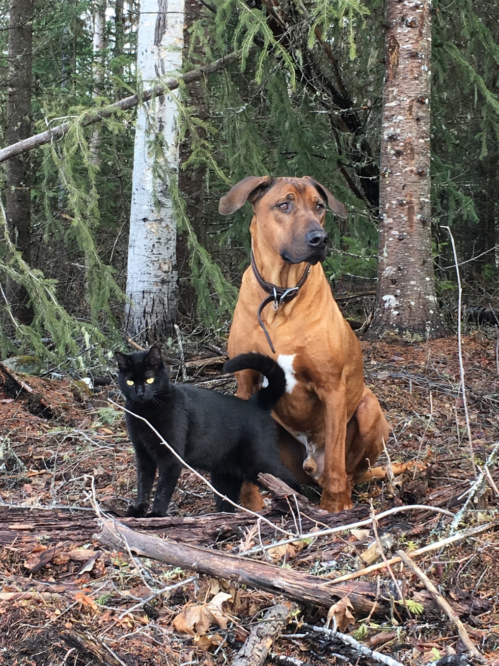BioRoadie is a Rhodesian ridgeback who takes care of his kitty friend Abbey. Abbey was born feral and found along the riverbank with her sibling. Abbey was very shy and has no confidence at all, being black in colour and having a less then desirable temperament put her low on the adoption list.