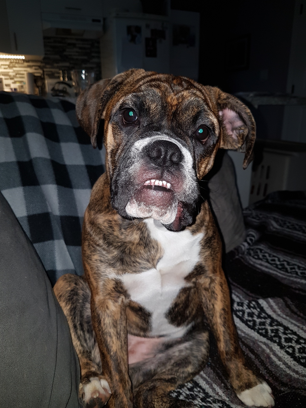 This is my baby Lilly, she is a nine month old Valley Bulldog and so cute and funny. She loves to play with my boxer and my cat Wilbur.
