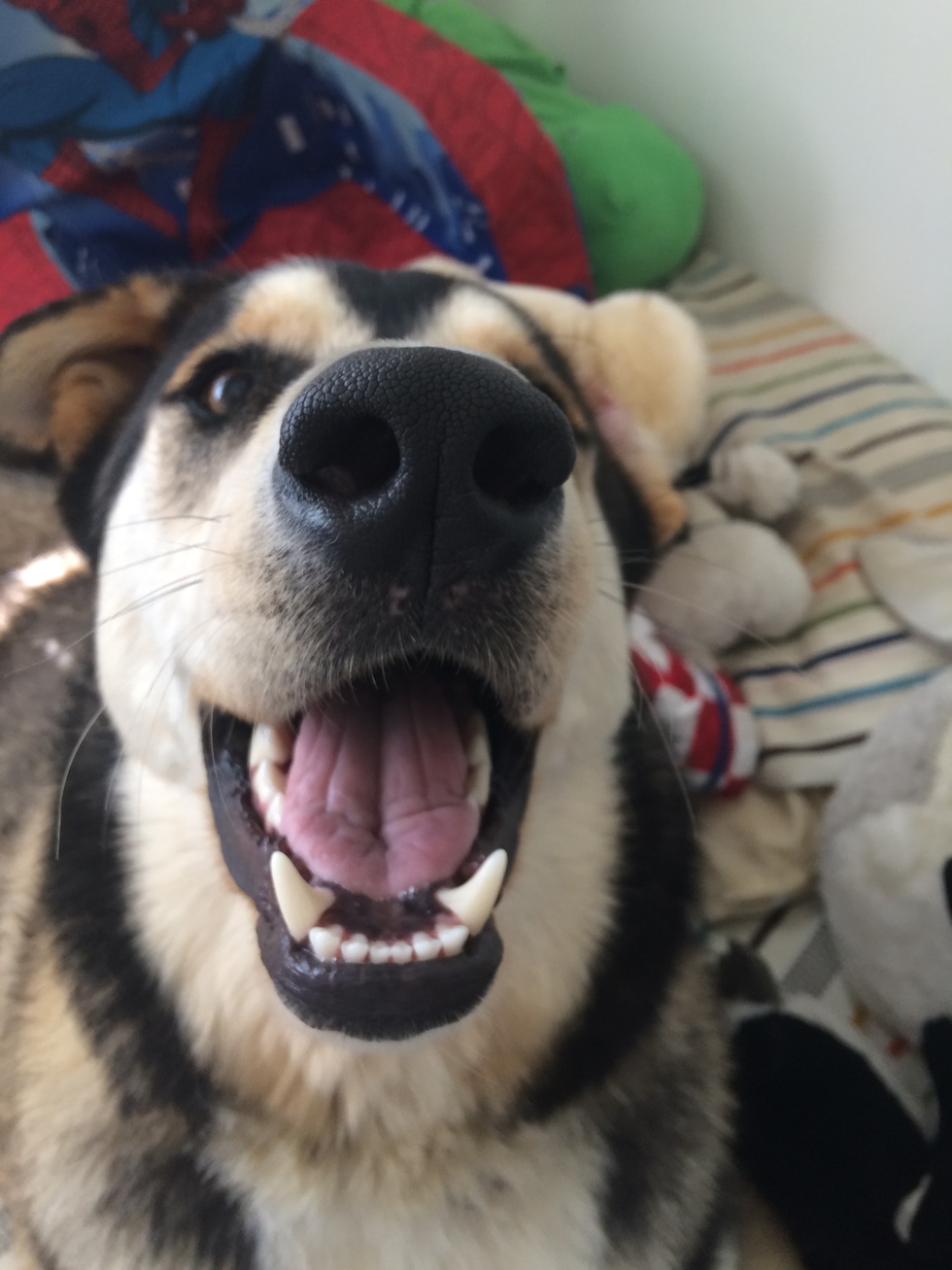 Geno is a Husky-Lab and also a little wolf! He is the kindest, layed back dog you will ever meet.