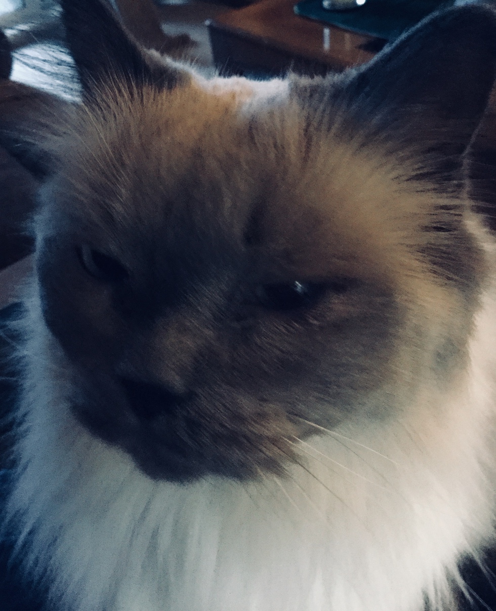 Animal BioBentley is a rescued cat from the New Westminster Animal Shelter. He is a Lavendar Point Himalayan, almost 6 years old. He is very talkative , quite loving, & a wonderful addition to our family.