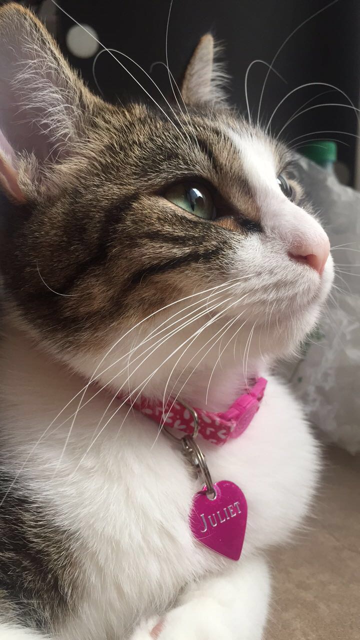 Animal BioJuliet is just over one year old! She was adopted with her brother Sebastian at the Vancouver SPCA almost one year ago by her loving owners Marcio and Samantha. They were found in a box as kittens with their other siblings. They were all born with an incaved chest condition. She is unbelievely affectionate, loving, curious and smart!