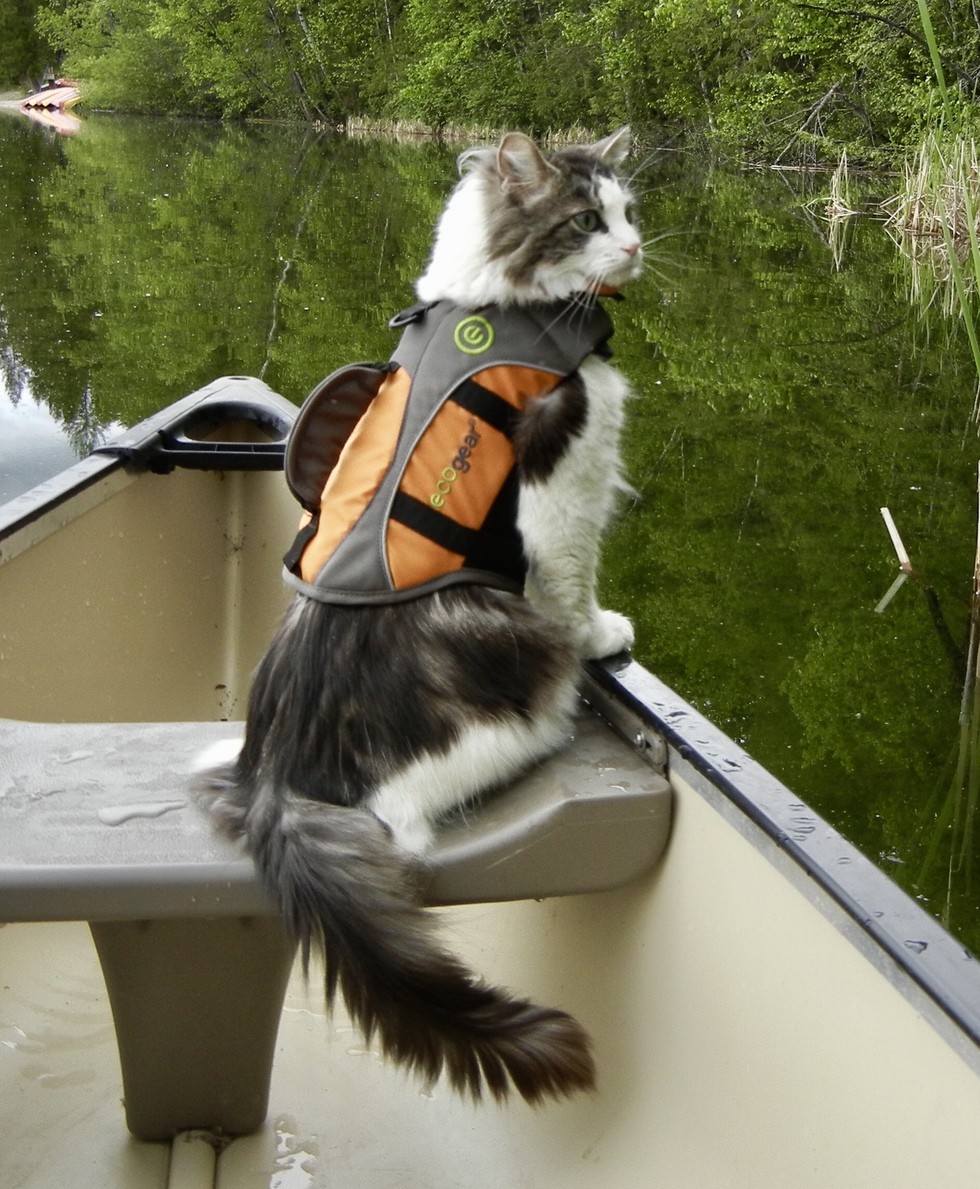 Right from the start he loved having the company of our two dogs, so anytime we would go out on a hike he would meow and meow until we broke down and let him come along. He doesn’t have the stamina the dogs have though, so when he gets tired out, we’d pop him into his carrier that strapped to my chest to finish the journey. He is so adventurous and is enamoured with water. Whether it’s a trickle coming from the tap, or a day at the lake - he is in his element when he is near the water. That’s the key word, “near”. He loves to be canoeing and paddle boarding but he’s not too fond of falling in - which has happened a couple of times but has not soured his love for these activities. We just love our guy - he’s been a perfect fit in our household and is what makes our house a home.