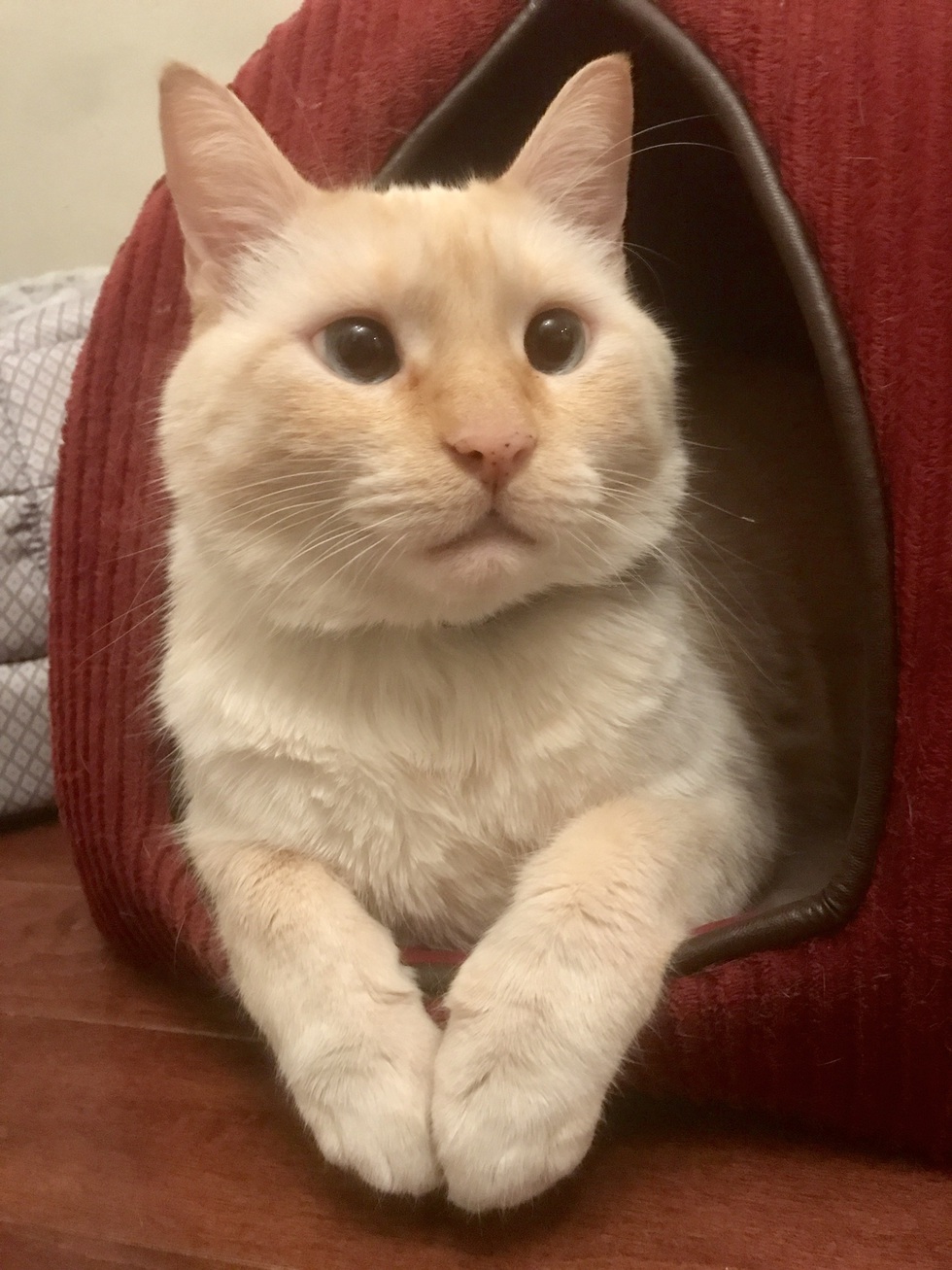 Animal BioHi I’m Q-Tip! I’m a 6-year-old Flame Point Siamese who was adopted from the Burnaby SPCA. Hobbies include sleeping, eating, sleeping some more, begging for food, bird watching and the occasional walk on my leash. I’m a bit cross-eyed and I have freckles on my nose. Ive got a big soft chubby belly and I don’t mind if you bury your face in it. I purr super loud :)