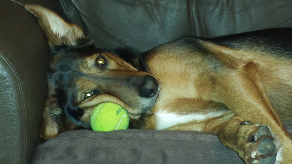 Animal BioKlio is a goofy 8 year old SPCA rescue. She was sooo tired after playing with this ball that she fell asleep on it! Her mom’s boss gave her the ball - she doesn’t usually get to play with tennis balls.