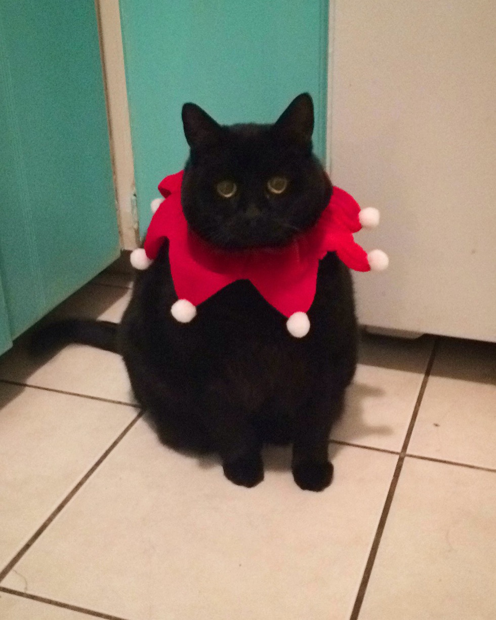 Animal BioHi I am Snoopy (aka, Snoop Dogg Cat), my mom adopted me two and a half years ago from the SPCA Vancouver. I was having trouble standing out to so I was moved to Vancouver to get noticed. Luckily my mom saw me on the web and fell in love. Little did I know she'd arrive the next day to pick me up. I weighed more back then (over 16 lbs and before that was 25.5lbs). My mom and I have worked hard together to lose the weight and I am happy to say, I come in at a healthier 13.5 lbs today! I still have a little more to lose, but I'm feeling much healthier and one of my favorite activities is chasing my laser and chowing down on my cat nip "carrot" toy. I think mom is just trying to convince me to eat my veggies. Mom is more of a fan of this collar in my photo but every December, I wear it for Christmas dinner at my grandparent's house. I would love to be your December calendar image as I think I can inspire other pets to keep at the exercise and never give up, especially around the holidays when Temptations are plentiful ;) xo - Snoop Dogg