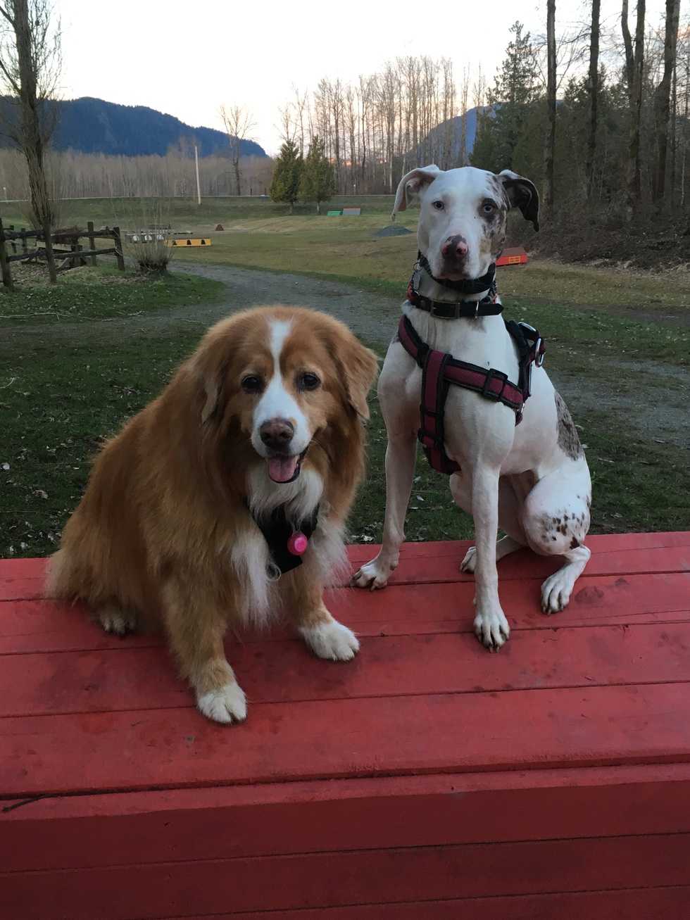 Now a big sister to Skye, (will be 3 June 2018), surrendered to Surrey Animal Resource Society at 8 mos old. A double merle Catahoula Leopard Hound, born deaf. After her first 8 months with no obvious training and bearing the physical scars of negative corrections Skye’s new Mom now communicates with her using sign language and a vibration collar. Skye is smart as a whip and will soon be entering the world of scent works this summer.