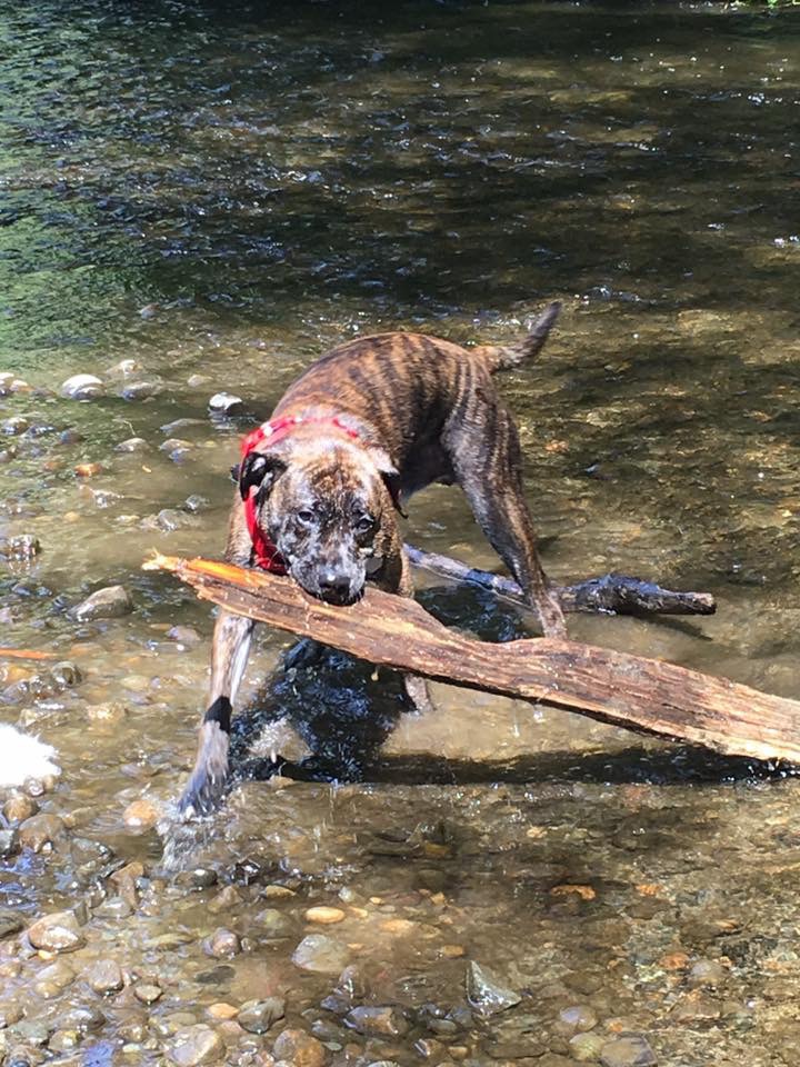 Animal BioHelo loves playing in the water and always seems to find the biggest stick 😆
