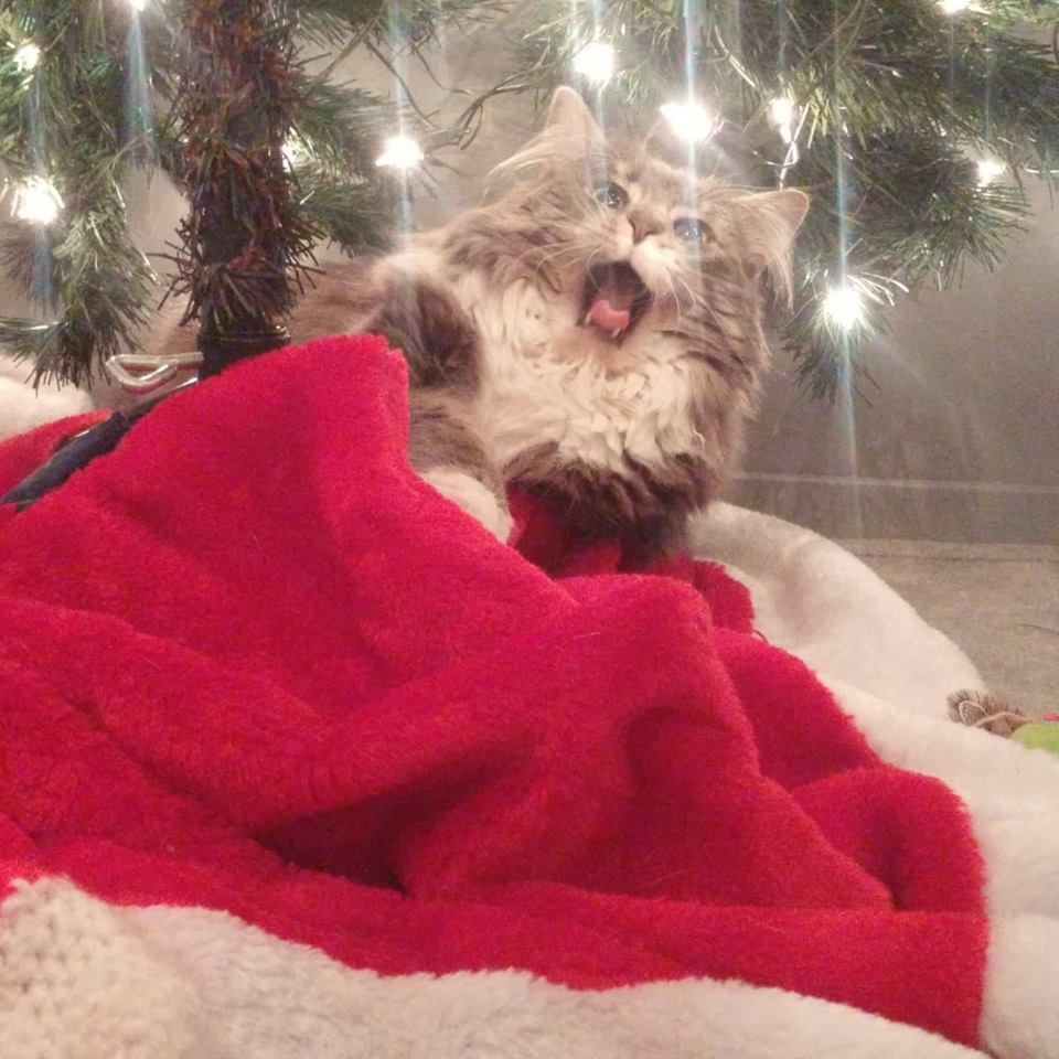 Animal BioMaggie has a lot of personality and ALL of it is cat! This is a picture of her "enjoying" our Christmas tree. She is known for leaping from out of nowhere to attack and for allowing an undetermined amount of pets before she lashes out...she has cattitude. We had picked out a different cat, her brother Kent, from the SPCA, but when we went back to pick Kent up we saw Maggie. She was reaching her little paw out from between the bars of the cage and quietly mewing at us. Maggie had just been spayed so was in a different room than the other cats, but it was love at first sight. She won us over with her beautiful looks and that little paw reaching out to us sealed the deal. I think we made the right choice, she is the perfect cat for our family!