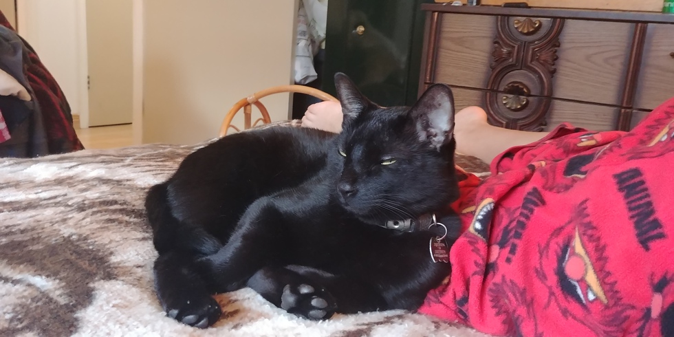 Animal BioHe is a black male cat, only 1 year old. Loves to watch out fish, and has an affinity for doing "playful eyes", watch out if he is giving them to you! He will sway at your legs and expect you to play back!