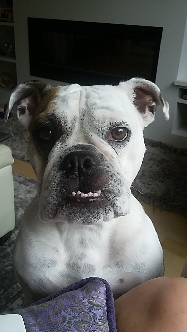 Animal BioIndia is the most beautiful gentle sensitive 2 year old Bulldog. She is my constant companion. She is such a happy dog she makes everyone smile. She is extremely intelligent and works diligently to learn quickly anything I teach her. She recently mastered carrying her own little bag of groceries in the house. This came after overcoming her own fear of grocery bags. She is adoraBull.