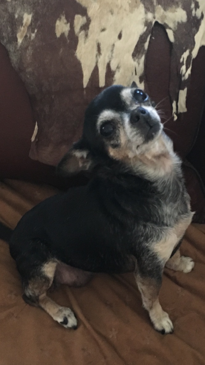 Animal BioLizzy is a sweet teacup Chihuahua. She is approaching her 12th year of age in May. She weighs 3 1/2 lbs and is so friendly, doesn't bark ,snap or snarl!! Loves to travel with us so she can sit on my lap, such a cuddlier!!