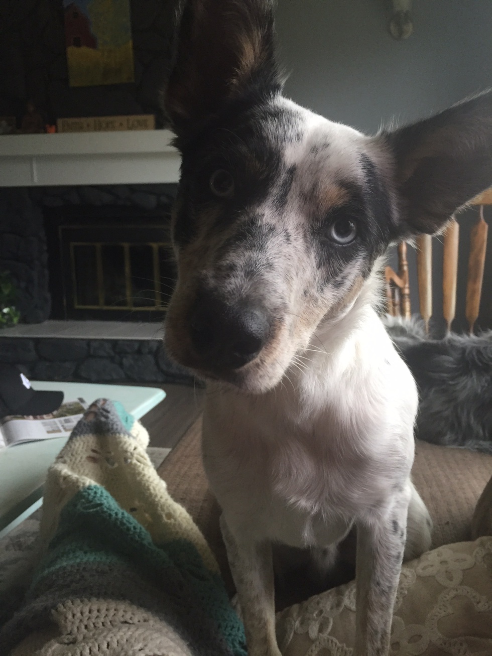 Seven is a 1 1/2 year old Heelers/border collie with ears for days. He was not breathing at birth and had to be resuscitated. He is loving, smart, loyal and eager to play!