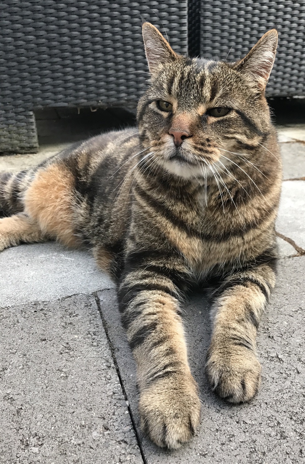 Rosy (Rosevelt). He is an 11 year old male tabby we adopted from a neighbour that couldn’t keep him. He loves going outside and is an amazing hunter.