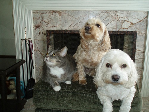Animal BioMolly the comical cat thinks she's a dog. Got her from a person who's cat had kittens. Booker T is a Cockapoo and we had to buy him because the BCSPCA and other shelters didn't have any small dogs at that time and our previous pet Daisy needed a new pal after her old passed away. Tootsie a Bishon x Poodle was also bought for the same reason. I called the 3 of them the 'Terrible Trio' because they stuck close to each other and protected each other. Unfortunately, in 2011 my dear Molly passed away. YES! Dogs and cats do get along together!