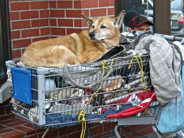 Maureen is her name. She took this picture when we were walking down near Chinatown. A homeless person's dog. He (the dog)