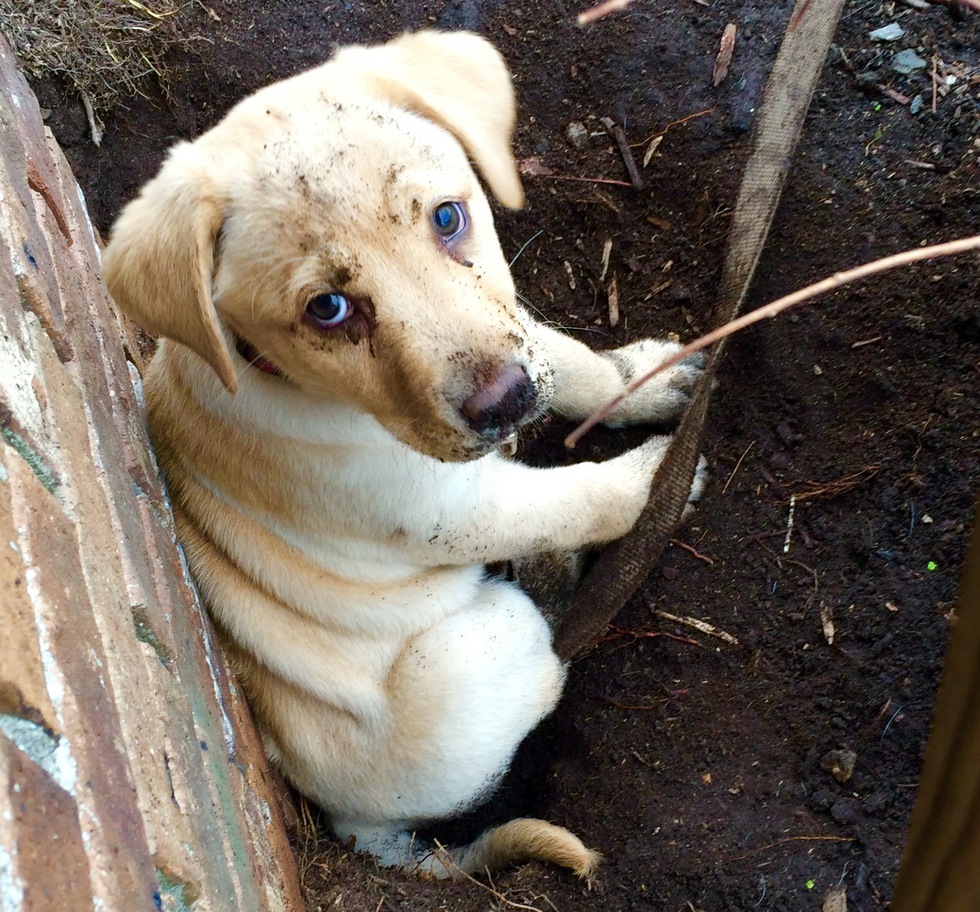 Nine week old paper having her first experience with dirt, Doug a 3 foot hole in the middle of my garden. But she couldn’t be any cuter doing it