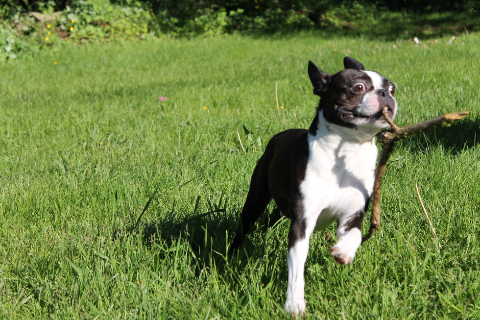 Animal BioBenny (Eggs Benedict) is a Boston Terrier who was surrendered to Boston Terrier Rescue Canada and who is now living a life of adventure with his girl. While he's not a fan of car rides, he is a fan of where the car brings him- the great outdoors. He's a little guy with a lot of spunk, always teasing his Boxer brothers and sister, as well as his Coonhound brother. Oh, and his favorite food (besides his raw meat), is donuts. Donuts are delicious. This photo perfectly captures what it means to be Benny.