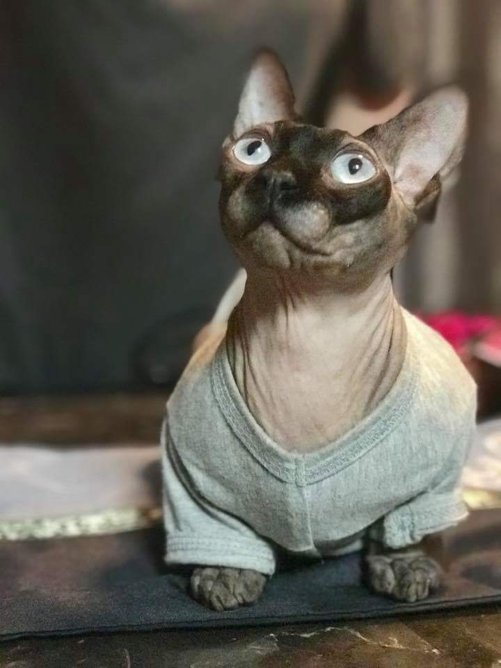My name is Eddie I am a Bambino Sphynx. I have an amazing personality. I look like a cat and act like a dog. I have weekly spa dates with my mom Kim. My mom and dad take great care of me. I have 2 sisters they have hair their names are Pyper and Pipyn. My mom told me that I am getting a Sphynx girlfriend this summer her name will be Edith. She will be a baby when she arrives, however we are excited all the same.