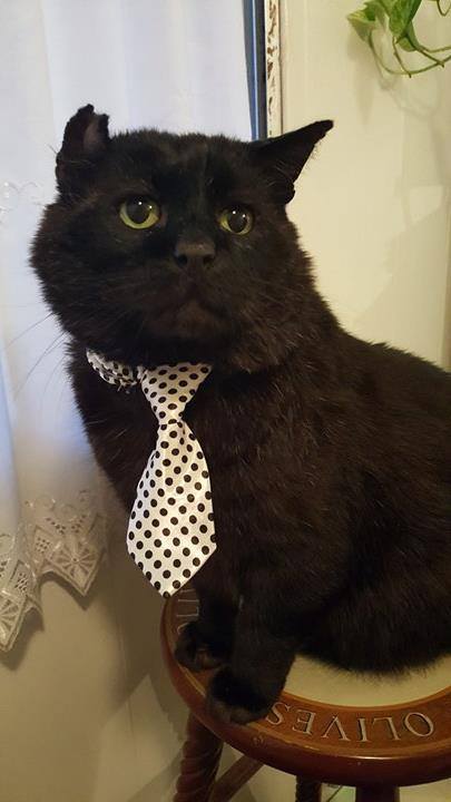 He also enjoys wearing bibs and ties and has a small collection of accessories for when he needs to feel dapper.