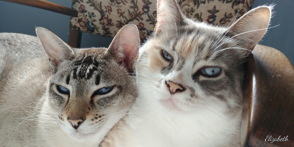 Animal BioThese two blue eyed felines are the Yin and Yang of the household. Thea with her quiet friendly misdemeanor who bows to greet you and Jack with his short flighty appearances who chooses to admire (or judge) you from a distance...but when it comes to cuddles they are heavy induglers. Their favourite activities beside sleeping and eating involve walking on you in your sleep, watching their guinea pig sibling, and chattering at the seagulls in the mornings. Thea was adopted through the BCSPCA as a kitten and Jack was 'rescued' as a kitten from a house of Chihuahuas. They hope everyone will take time to vote on a favourite photo and help out those animals who are awaiting a happy healthy household. Vote Meow!