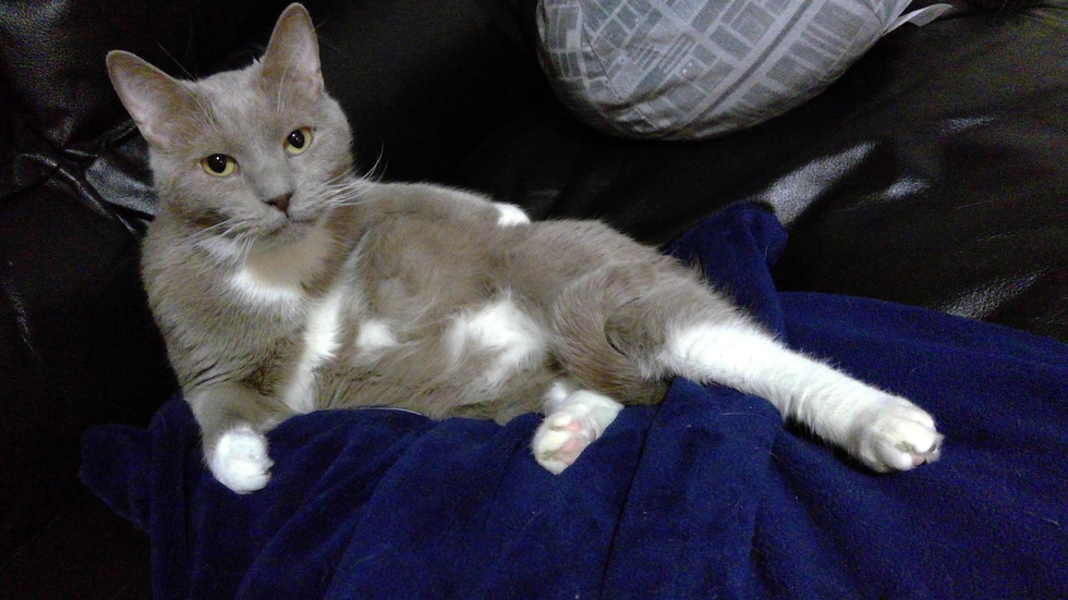 We got Winston from the SPCA last year. He is approximately 9 years old. He is very spoiled. He loves to cuddle, play and most of all nap.