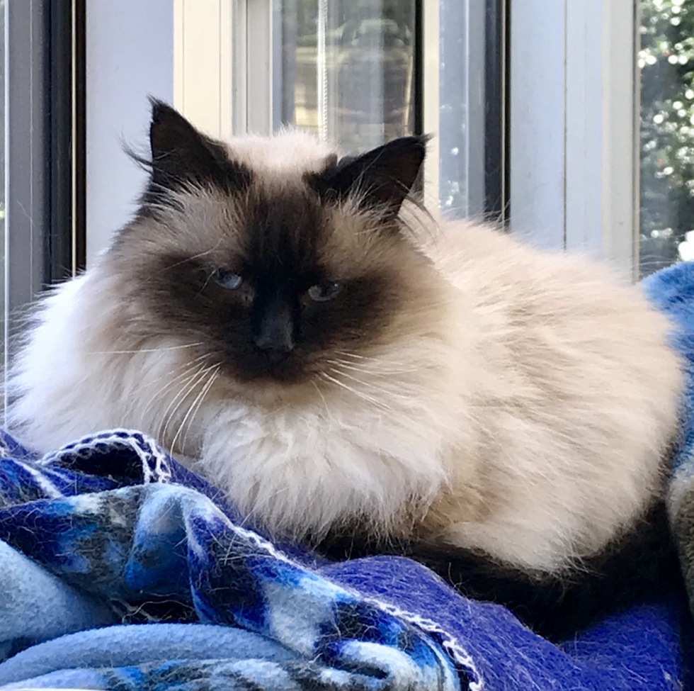 Animal BioLibra is a feral-born rag doll, found as 5 week old kitten under a city dumpster in New Westminster , BC. It took city workers nearly a week to trap her, an event that has left her with very deep fears of all humans . I got her from the SPCA in New Westminster nearly 10years ago and spent many many hours, days and months, trying convince her not all humans are bad or scary. To this day I am the ONLY human she will allow to touch her! Libra was dehydrated, starving and covered in dried mud when I first got her and she slept (and lived) in ny sweatshirt against my chest for the first 3 months. She is a very small cat in size and I have to protect her from the 3 big males (also feral born) that share our house. With me, Libra is a snuggler and loves to laze on the back of the couch in the sun room while looking out upon the world.