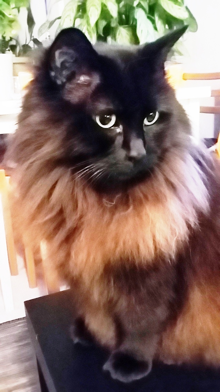 Animal BioTango has delicious purrs, luxurious fur, an adorable crooked tail and a charming nature. He's a friendly boy with deep blue eyes, who likes to kiss and cuddle. He loves affection and will flop on his back to have his belly rubbed. He lives in a condo and loves to perch in his cat tree and watch the people and traffic going by. Not sure of his breed but he looks like and has the traits of a Tiffany. He's asthmatic and is on medication and is being monitored by the Vet. A bundle of love and the love of my life.