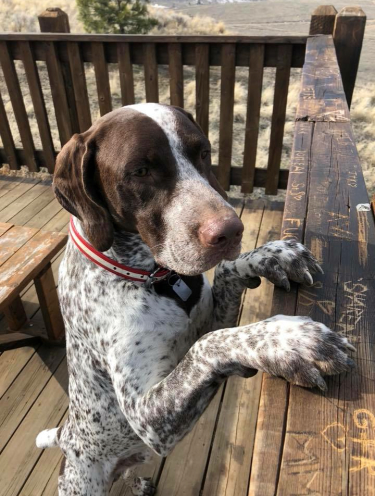 Animal BioJax the German Shorthaired Pointer puppy enjoying the view a Kenna Cartwright Park in Kamloops
