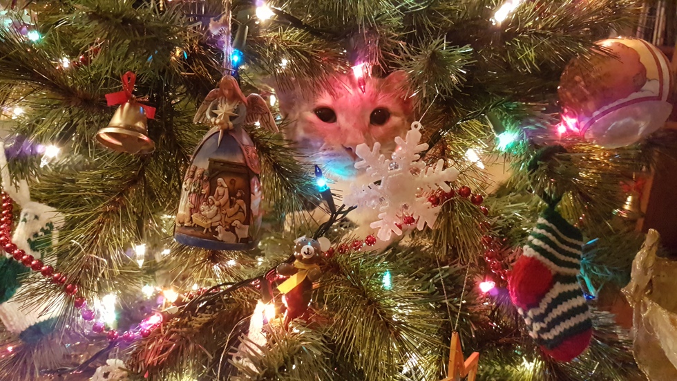 Animal BioMatilda, originally Tangerine, chose me to adopt her from the Port Coquitlam BCSPCA office in June, 2017. This was her first Christmas and she absolutely fell in love with the Christmas tree.