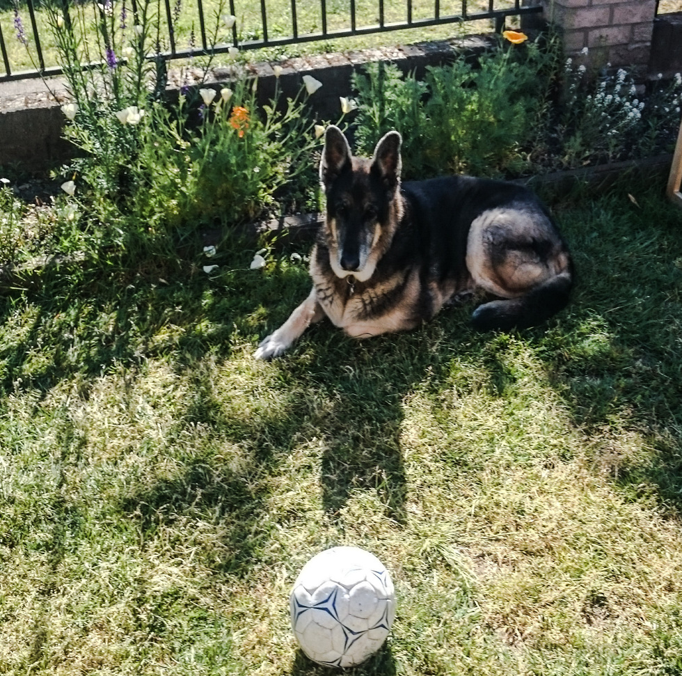 Animal BioEinstein is a 11 year old German Shepherd male furbaby from a Landfill in Maple Ridge. We purchased him as a 6 week old puppy and didn't know he was only 6 weeks as the Breeder lied to us and told us he was 8 weeks, when we took him to the S.P.C.A. Hospital to get his first puppy shots and found out he was that young because the breeder who was Caretaker of the landfill said he was older than he was. We had him Neutered at 6 months at the S.P.C.A. Hospital. Einstein is now a thriving senior dog who is well mannered and loves to play ball with our grandson Jayden, they play grass hockey and soccer together and Einstein pushes the soccer ball with his head. Einstein is very smart and suits his name well.