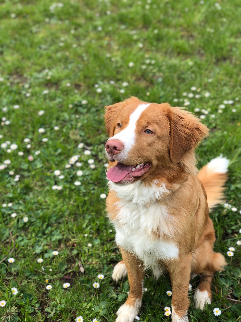 Oliver is an energetic 9 month old Nova Scotia Duck Toller from Vancouver Island. His heart is easily won over with a handful of dog food and a kiss on the nose.