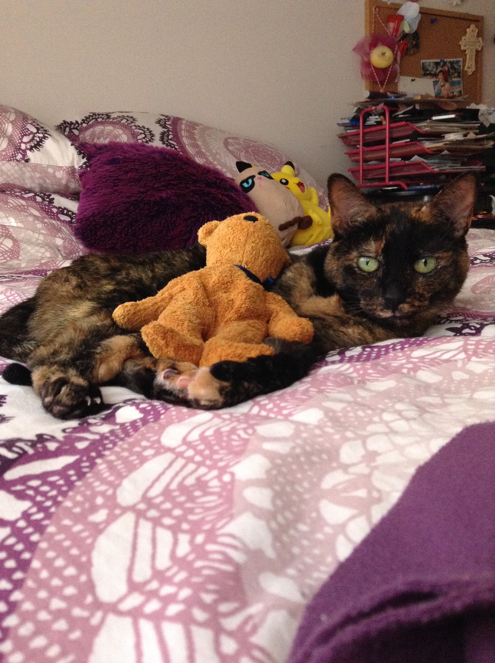 fluff is a tortashell who came to us when she was a 4 week old kitten. shes lives a pampered life at her house and loves a lot of attention from her family.
