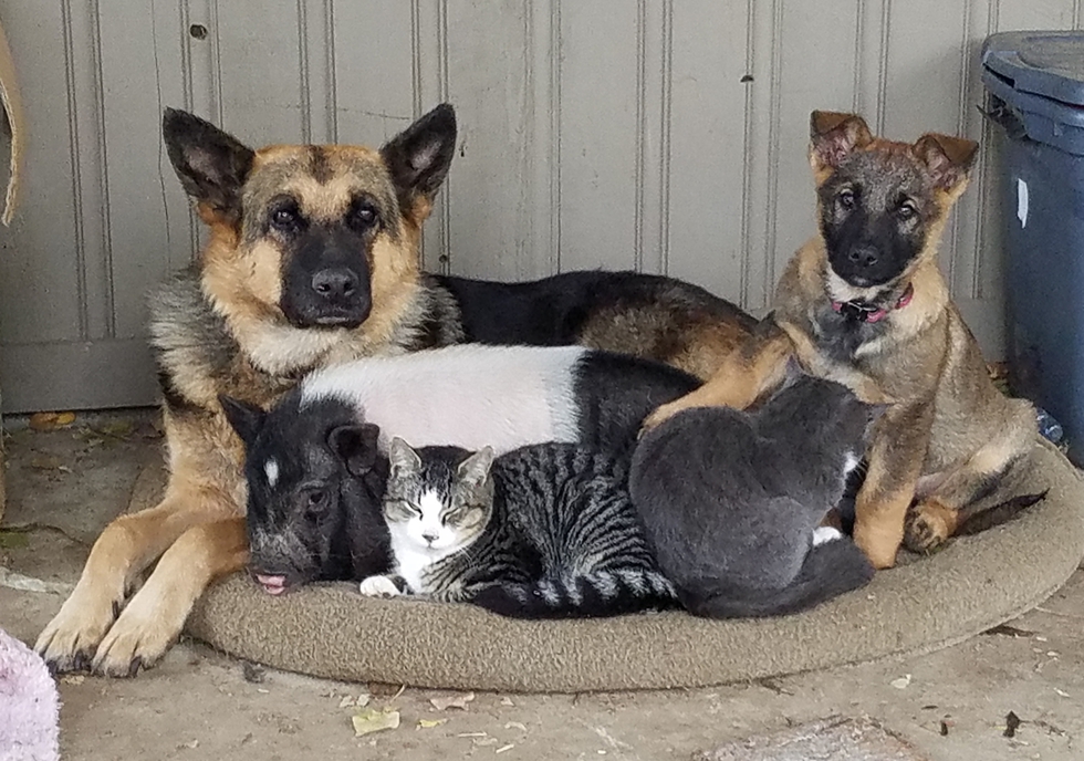 Reba the German Shepherd is an amazing dog. She loves all animals and small children. She is a great babysitter and protector of her family.