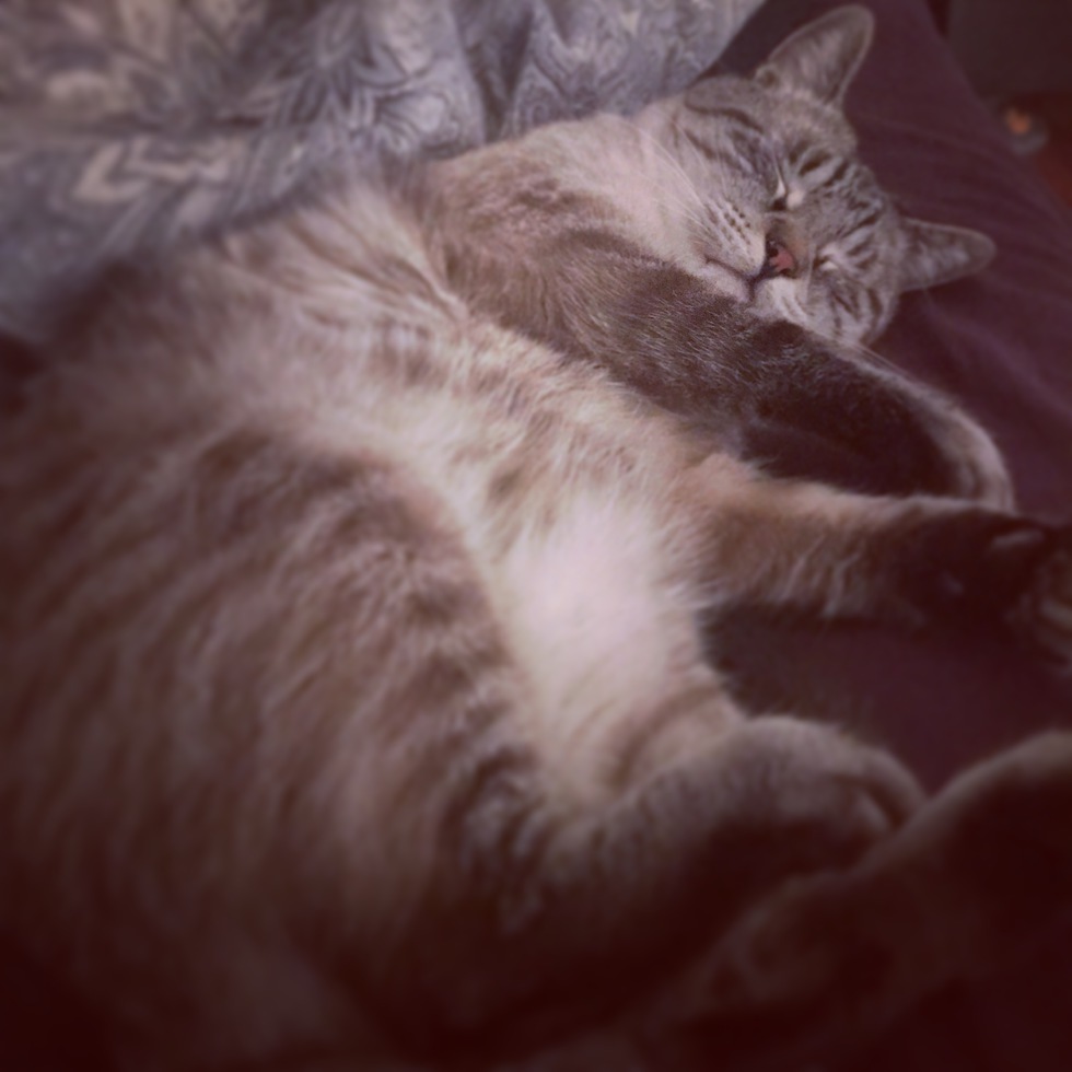 Animal BioDorian is a rescue who came into our lives 2 months after I lost my mother to cancer 2 and a half years ago. To this day, I firmly believe that he somehow knew I needed him and chose me. I was a wreck, I was mourning, I needed companionship. The week that Dorian became a part of our family, my partner and I, went to visit some cats, just "to have a look". By no means did we intend to make an adoption that day! However, while visiting, Dorian reached his little arm out of the enclosure, and made the most intense eye contact with me, as if saying "hey, you're hurting. I can help". We asked to bring him out and spend some time with him and I immediately knew that he had to come home with us. Since then, Dorian has been the most perfect fit for our family. He's affectionate and gentle. He's so attentive to his people where he'll come when he's called, jump up on my lap when invited, and even help me get my yoga on. This picture, though, captures the best of his qualities. I'm not sure what exactly was in his past but I know there was abuse and neglect. He went through a stage after he first joined our household where he was a timid and uncertain. Now, he is so free and he trusts us. He comes to sleep as my little spoon each night and I wake up each morning with the image above. His belly is exposed, he's snoring softly, and his face is so relaxed. Seeing him this way reminds me that things are actually okay. His demeanor teaches me to breath a little easier each day.