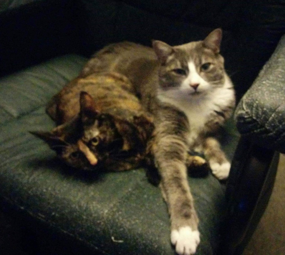 Animal BioCooper was found in a dumpster at 8 weeks old, scared and hungry. Now he’s living the good life, the biggest cuddle bug ever. Caly was rescued from a frightening feral life. Now she can relax and enjoy life with her bestie.