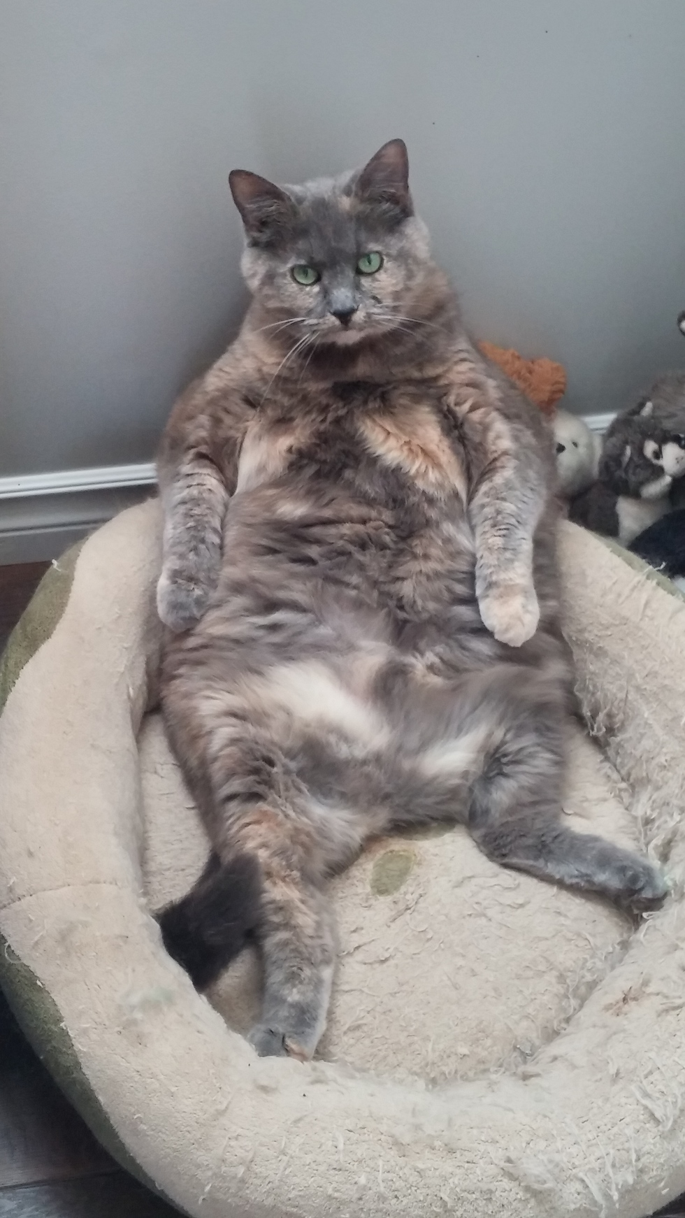 Animal BioLUMP WAS FOUND IN A DUMPSTER, WITH BACK ISSUES. MY DAUGHTER BROUGHT HER TO HER "FOREVER HOME." SHE WAS AGGRESSIVE AND AFRAID FOR SOMETIME. WE HAVE HAD HER FOR ABOUT FIVE YEARS NOW, AND SHE HAS TURNED OUT TO BE A LOVING, AFFECTIONATE CAT.