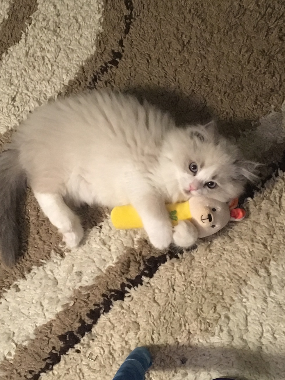 Animal BioThis is Obi he is 4 months old and he loves playing with our daughter who is 5 months old we purchased him from a breeder who had given us my cat before him whim we had to put down as he got really sick.