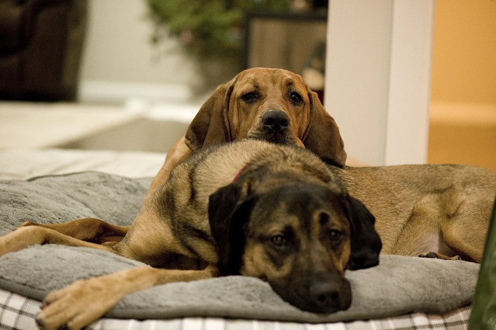 If these two hounds aren't running and wrestling, you can be sure to find them snuggled up together on the couch.