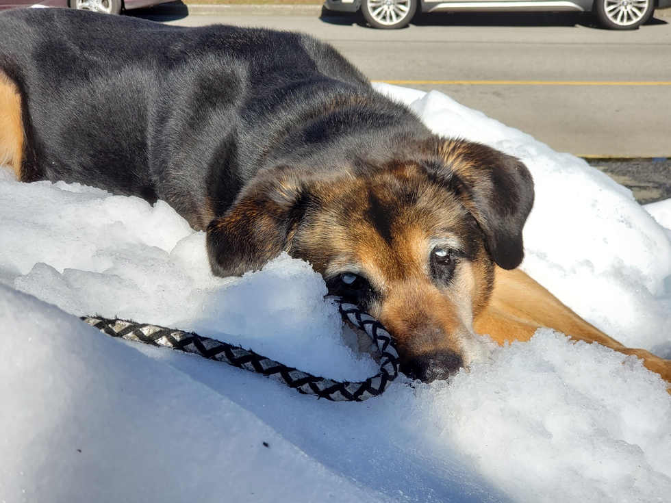 Animal BioThis is Frankie. He adopted me from the Coquitlam Animal Shelter. He was brought in 4 years ago as a stray. He was very sick with infections, hypothyroid and Mast cell cancer. He so far has defied the odds and is doing very well. He loves his snow pile! 🙂