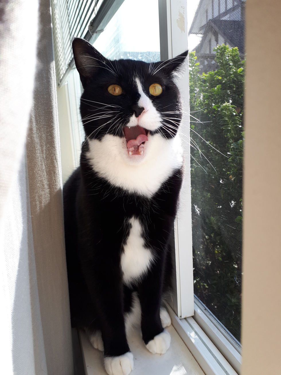 Theo has brought our family so much joy, laughter and a reason ( even if its 2am for attention or food) to get up every day. Theo has such a funny and unique character! being very particular about when you can pet him, running around- sorry- galloping around the house like a horse, being carried around in bags, not to mention claiming EVERY box that comes in the house. I think my favorite is that he wants to be where his people are- he likes to sleep in the hallway (between everyones rooms) where he gaurds us through the night and can be apart of whatever might happen.