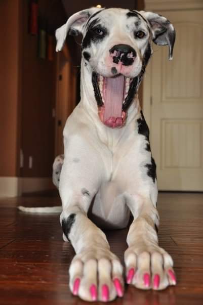 Animal BioThis is our gorgeous great dane Ava. My daughter used to paint her nails for each holiday or event, she always sat oh so patiently, even while they dried. It was the cutest thing ever! We said goodbye to her 2 years ago, at age 9.