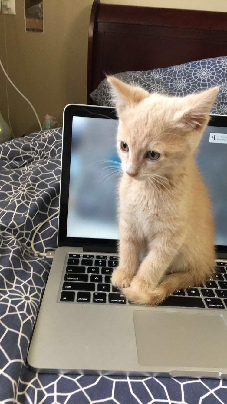 This is Ollie, he is an orange tabby cat full of personality. He loves to get into trouble and that includes sitting on my laptop.... Isn’t he just too dang cute!