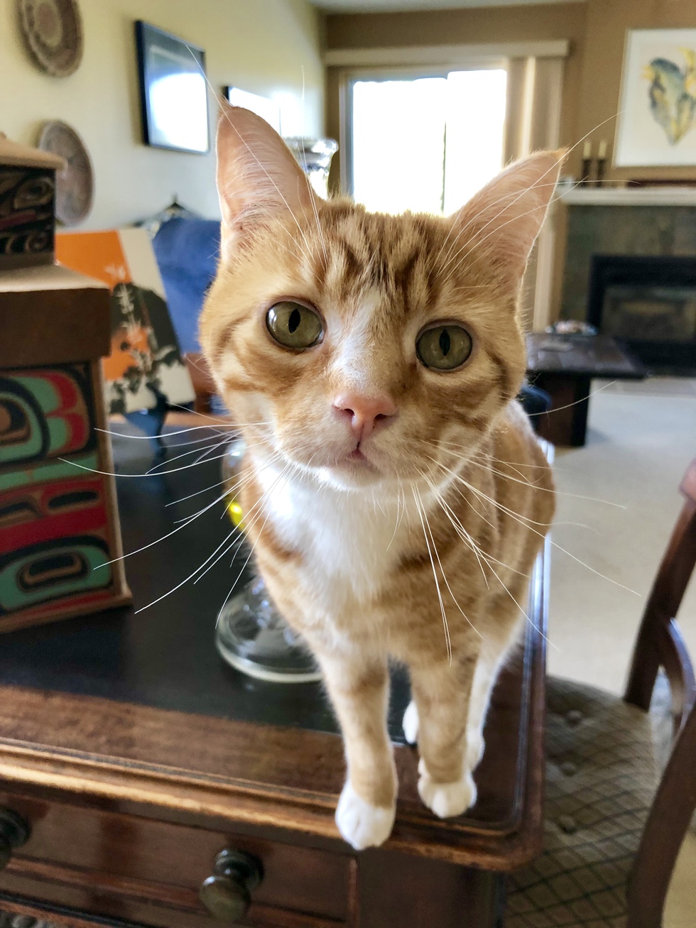 Timbit is a 5 year old SPCA rescue as a kitten. He is fearless, full of curiosity and very affectionate.