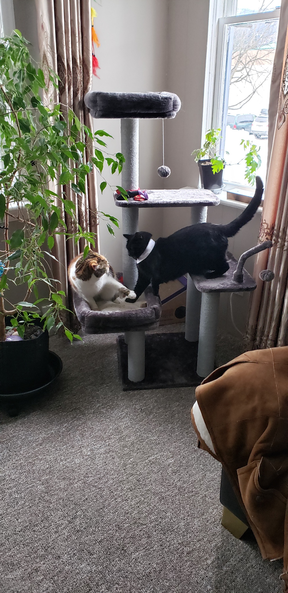 In the picture this shows the true reality of fur siblings. They can be loving towards each other but most of the time its battle time for the good sleep spot.