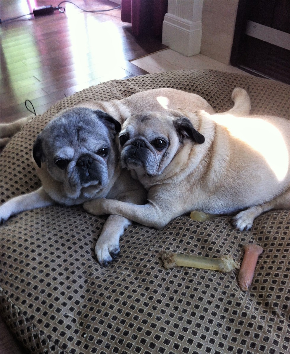The father and daughter team. In honor of my two beloved puggies that passed away recently. They brought us so much love and joy in the 14 years that they were with us.