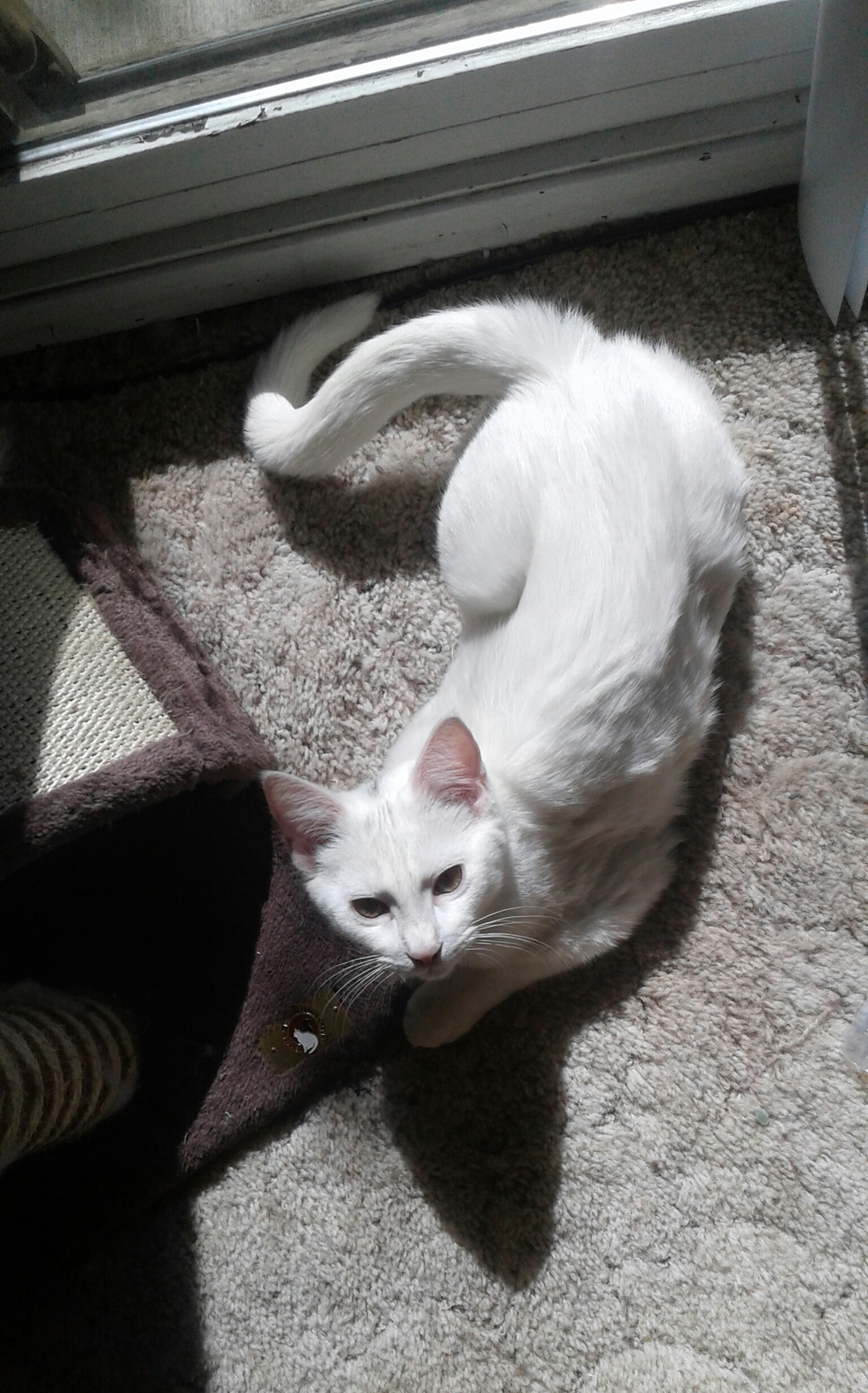 Animal BioAcari is a spunky one year old domestic short hair with white fur & green-yellow eyes. She was adopted from the Williams Lake branch on the one year anniversary of our 13 year old cat's death. She has brought happiness back into my life ❤